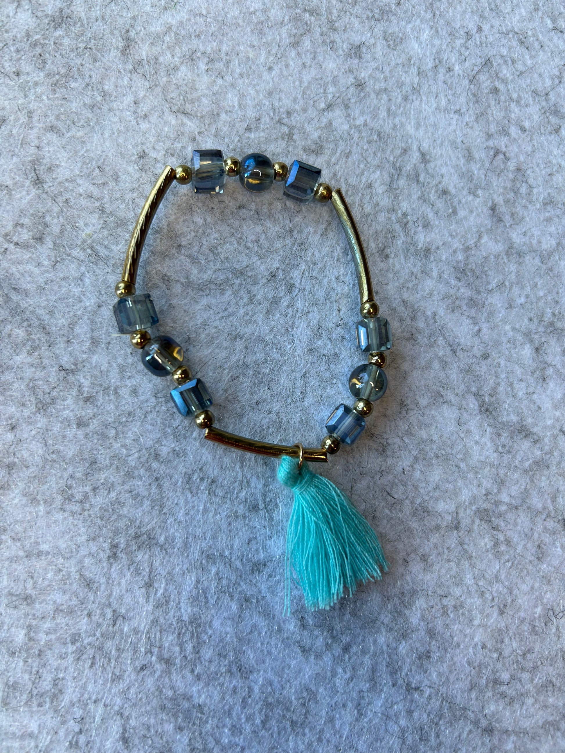 Add a splash of fun to your wrist with this Blue Tassel Bracelet! Featuring vibrant blue tassel charm, sparkling clear blue beads, and shiny gold stem beads, it’s the perfect playful accessory to brighten any outfit. Lightweight and lively, it’s made to keep your style fresh and cheerful all day long.