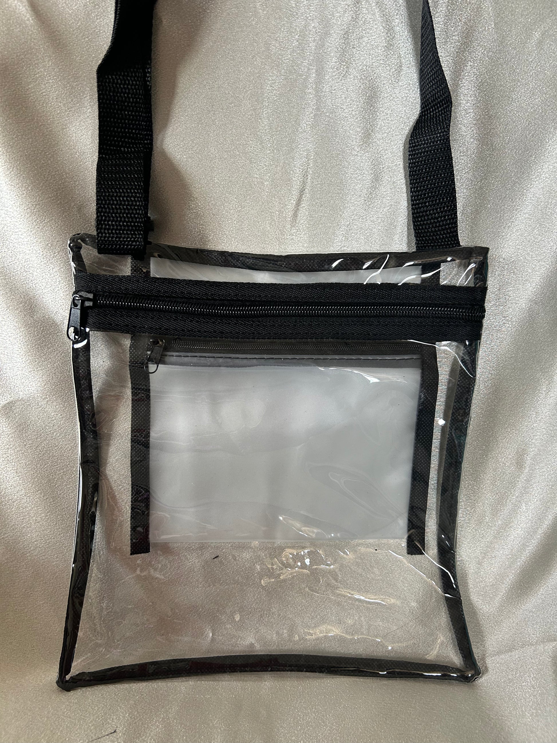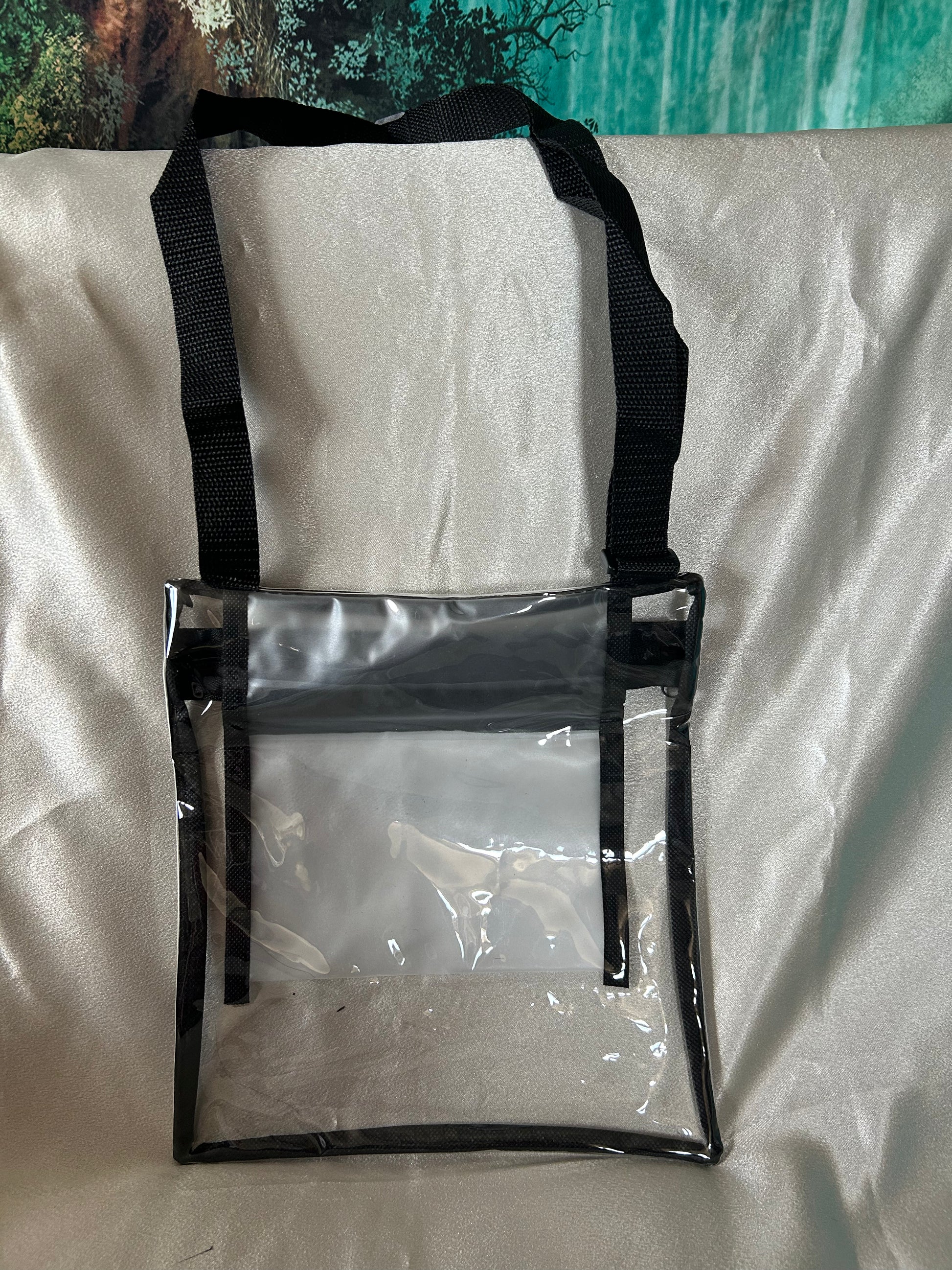 This medium clear bag is perfect for keeping your essentials visible and organized. Featuring a sleek black handle for easy carrying and a secure inside zipper pouch to stash your valuables, it’s both practical and stylish. Whether you’re heading to a game or just want a fun, fuss-free bag, this clear companion has got you covered!