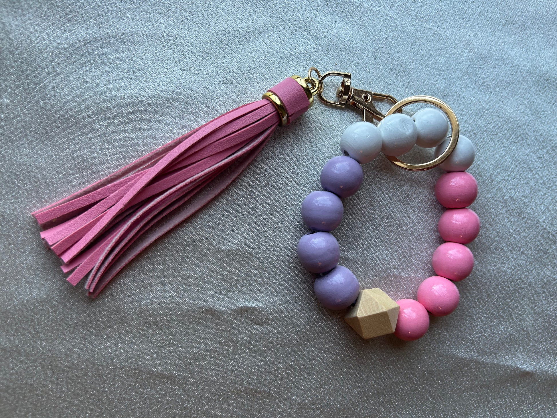 Add a touch of charm to your everyday essentials with this pink keychain. Featuring delicate pink beads, a soft pink tassel, and subtle white and lavender accents, it’s the perfect accessory to brighten your keys or bag. Lightweight and stylish, this keychain combines practicality with a playful pop of color, making it an ideal gift or personal treat. Elevate your style effortlessly with this eye-catching, feminine accessory.
