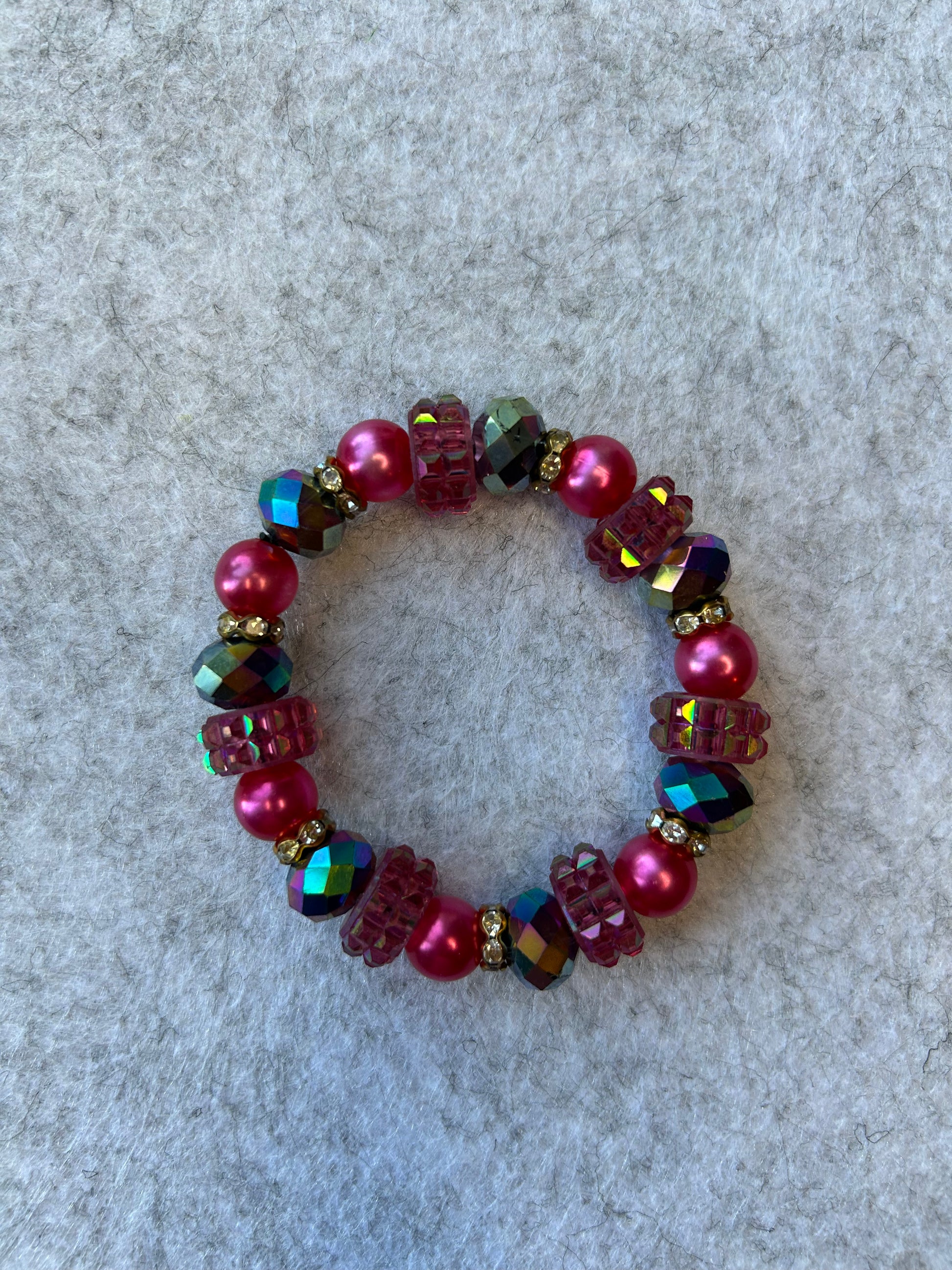 The Primrose Bracelet showcases an elegant arrangement of red and pink diamond-shaped beads with a subtle psychedelic pattern. This sophisticated piece adds a touch of artistic charm to any outfit, blending vibrant colors with refined design for a timeless accessory.