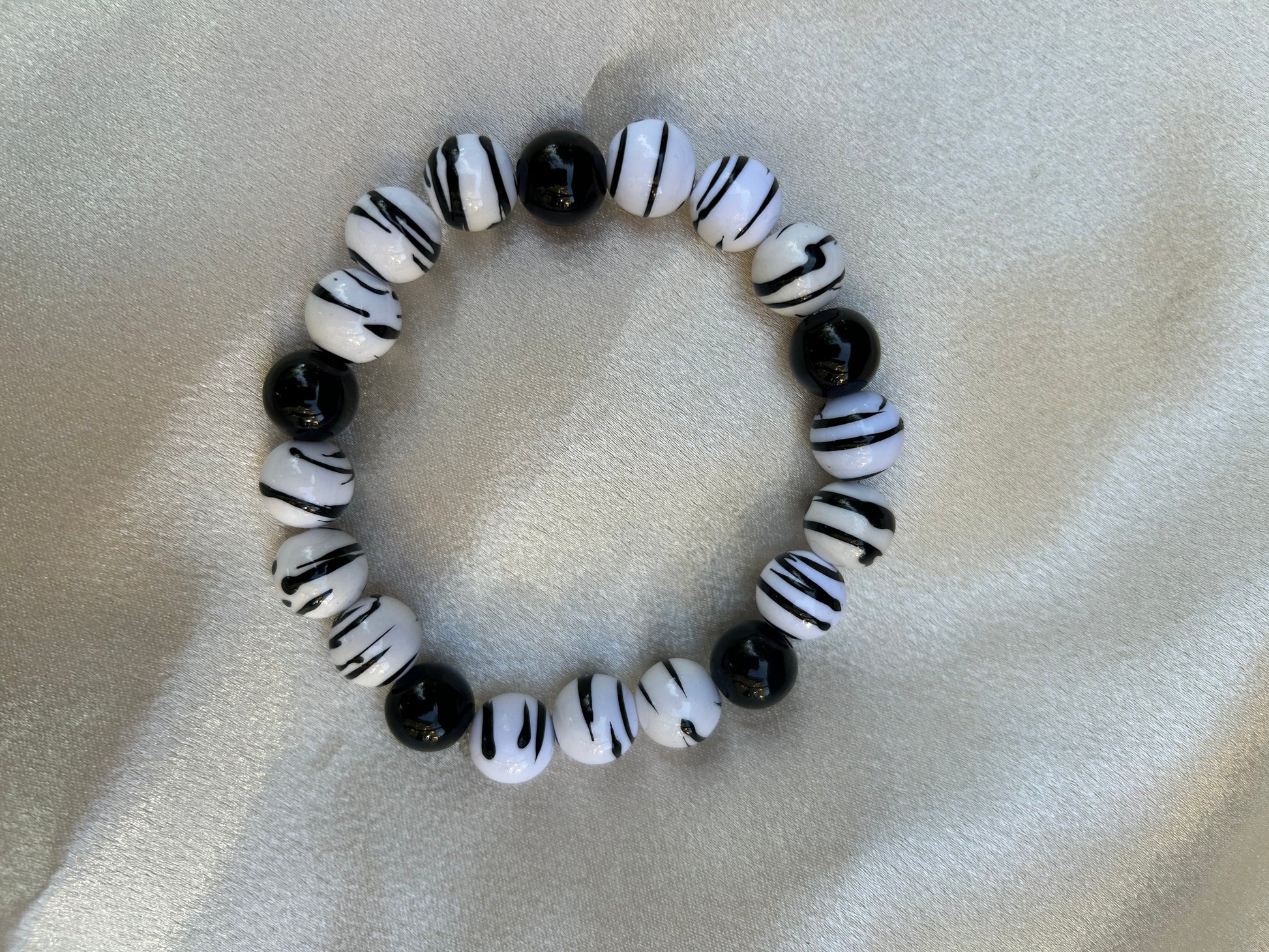 Make a bold statement with the White Zebra Bracelet, featuring striking white zebra-patterned beads contrasted by sleek black accents. This daring accessory adds an edgy touch to any outfit, perfect for those who want to stand out with confidence and style.